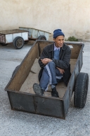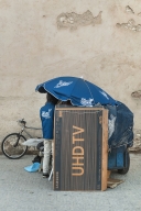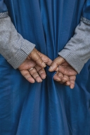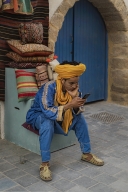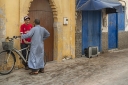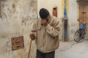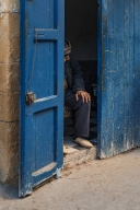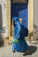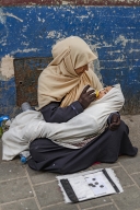 The Medina of Essaouira, Morocco was formerly named Mogador, a name originating from the Phoenician word Migdol, meaning a 'small fortress'. In the midst of that small bluish fortress upon the Atlantic coast, a begging mother is feeding her child.