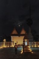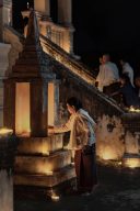 Meak Bochea, or more commonly known as Magna Puja, is one of the most important buddhist festivals. It is celebrated on the full moon day of the third lunar month, by the Theravada Buddhists in Southeast Asia. Here a small community is following that tradition in Kampong Cham, Cambodia.
